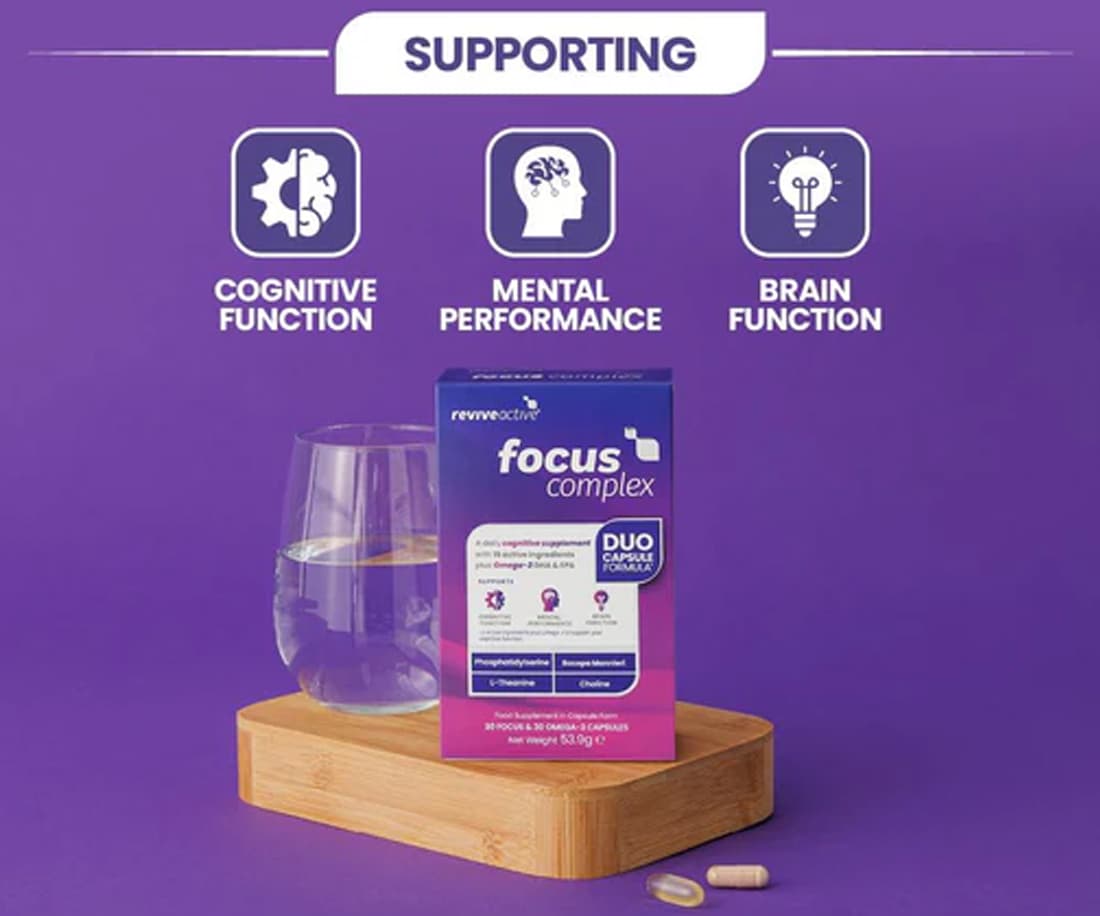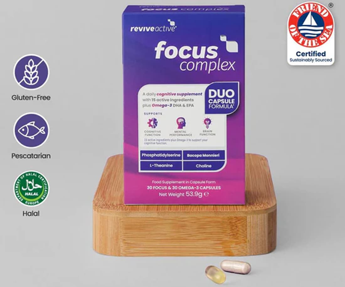 Focus Complex has been scientifically formulated to support your brain and mental performance. Our duo capsule combination includes a Focus capsule alongside a powerful Omega-3 fish oil capsule.