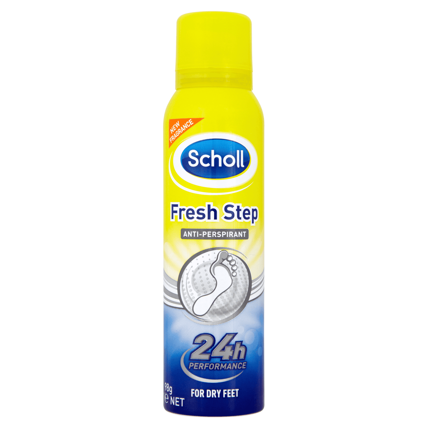 Scholl Fresh Step Anti-Perspirant Foot Spray has a specially developed Tri-Action formula which neutralises odour, reduces moisture and provides 24-hour protection against odour.